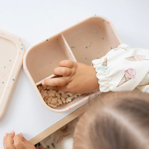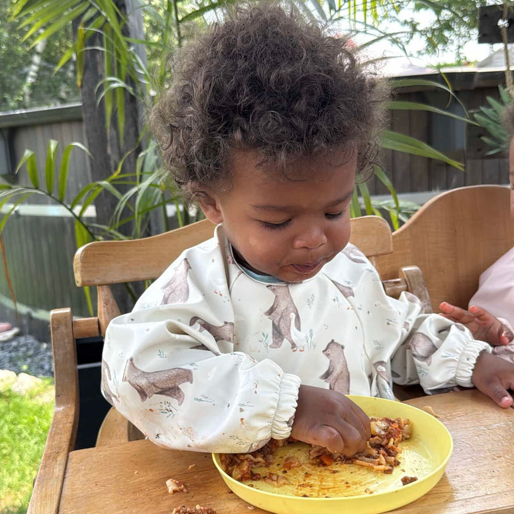 De la vaisselle en silicone , des bavettes à manches longues , des housses pour chaise IKEA , de tout pour manger avec style !