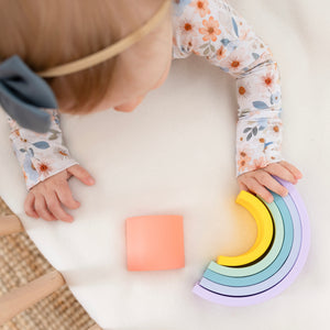 Le jouet arc-en-ciel stimule le développement cognitif et la motricité fine! Entièrement en silicone, il peut être mâchouillé, lancé, adoré!