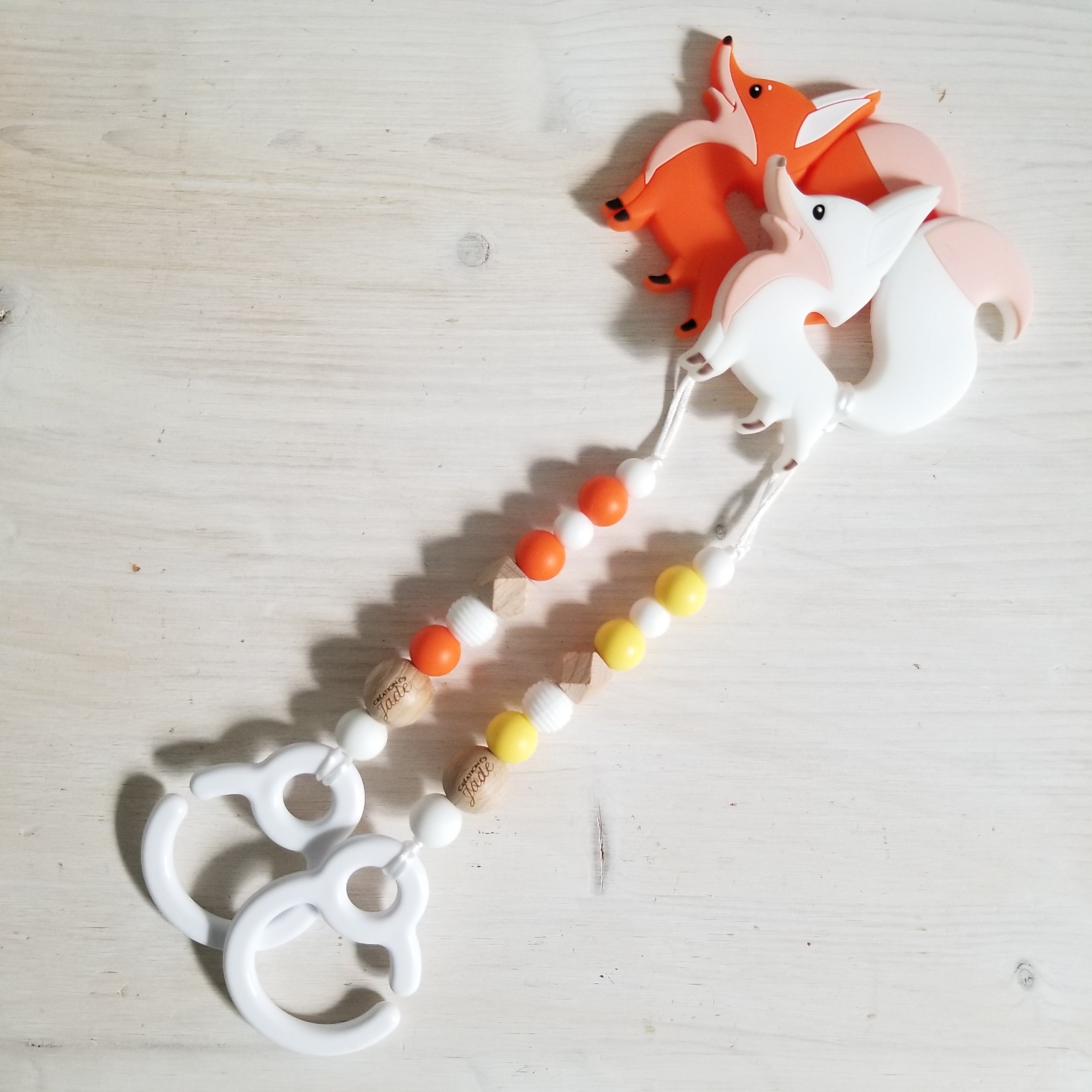 Les clips ne sont pas faites pour être mâchouillées ni être installés sur de gros tissus épais. Les bébés ne devraient jamais dormir, ni être laissés sans surveillance avec un attache-suce ou un jouet de dentition.